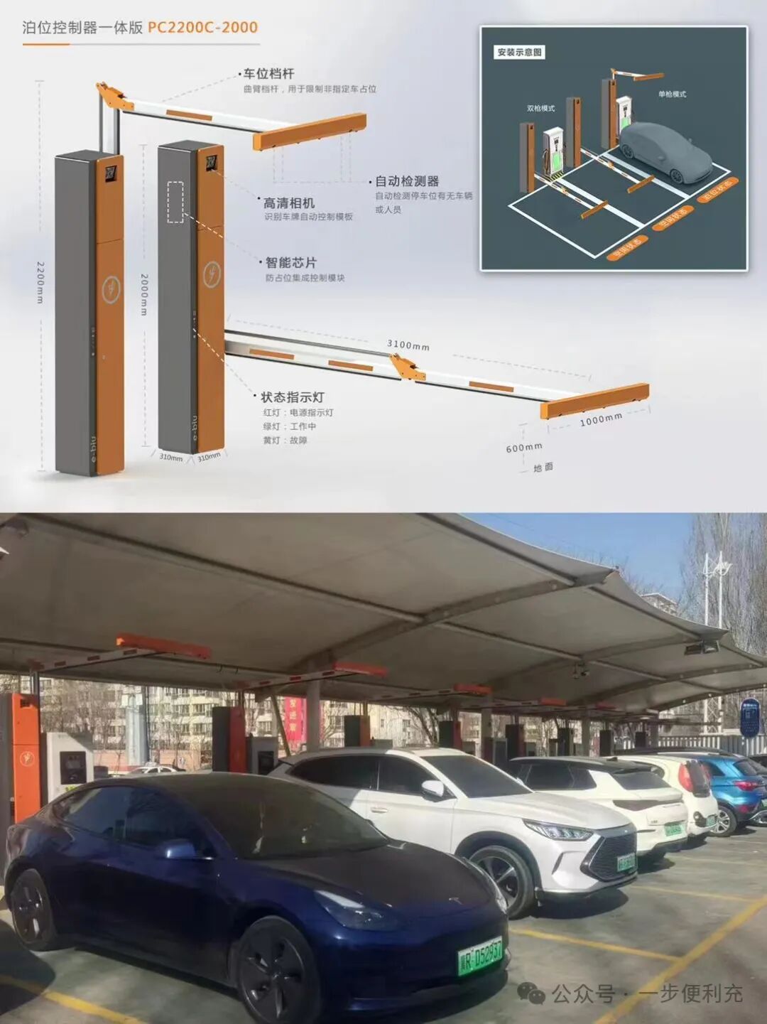 一步充电创始人项军龙针对《充电量提升之防占位解决方案》,推出了为直流桩运营配套的泊位控制器,以及应用于小区场景的充停机器人。其中作为国内首创的后置挡杆式泊位控制器,因为具有无物理碾压和冲击、朝下的雷达检测、自适应的高度和遇阻反弹等诸多首创功能,使得一步泊位控制器有着明显的优势,实际应用效果非常好。此外,充停机器人因为自带泊位控制和交流充电两大功能,目前已在全国投放了上千台。