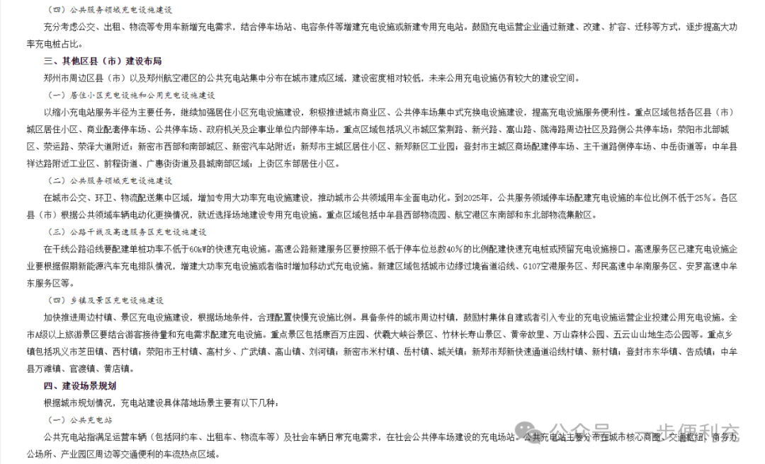 3月19日,郑州市人民政府印发郑州市电动汽车充电基础设施发展规划(2024—2035年)的通知。 通知指出,截至2025年末,全市将新建公用充电设施1万个,专用充电设施0.5万个,居住小区充电设施15.5万个,换电站20座,超级充电站300座,乡镇地区充电站458座,形成城市核心区充电服务半径小于1公里的公共充换电网络,全力保障郑州市67万辆电动汽车安全出行。 预计2035年郑州市新能源汽车保有量将达到270万辆,充换电设施规模将达到110万个,形成绿色环保、低碳高效的交通服务体系。 围绕主城区建设布局,《规划》提出,郑州市主城区已基本完成公共充电站和专用充电站布局,下一步应重点推进居住小区充电设施建设。 居住小区充电设施建设方面,结合老旧小区改造,推进居住小区停车位的电气化改造,保障居民个人充电桩的安装权益,做到能装尽装。鼓励社区物业企业积极参与“统建统营、社区自治”管理。在居住小区相对集中的地区选择公共停车场配建直流充电站,积极推广智能有序慢充为主、应急快充为辅的居住小区充电服务模式。 通过“个人充电桩+统建统营、社区自治+有序充电技术应用”组合方式,切实解决居住小区充电设施建设管理难题。加快推进单位内部停车场充电设施建设,鼓励有条件的单位内部充电设施和居住小区充电设施开放共享,提升充电服务能力。 - 以下为原件 - |
