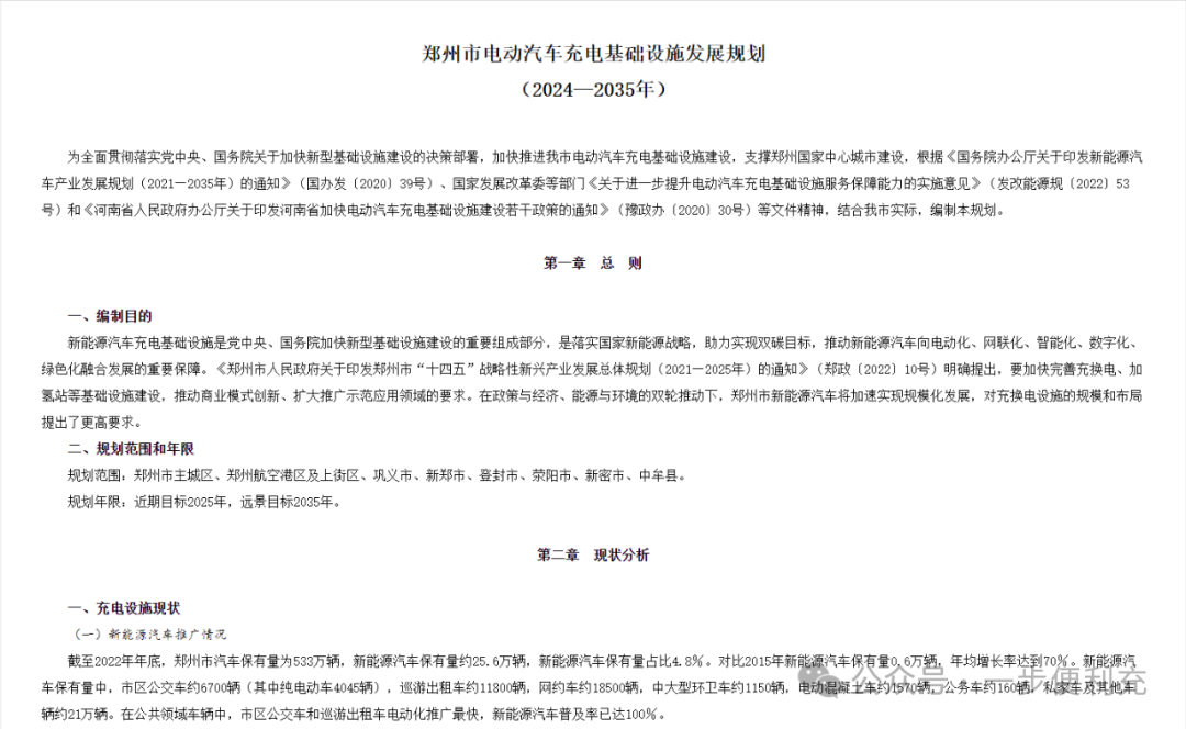 郑州印发《电动汽车充电基础设施发展规划(2024-2035年)》