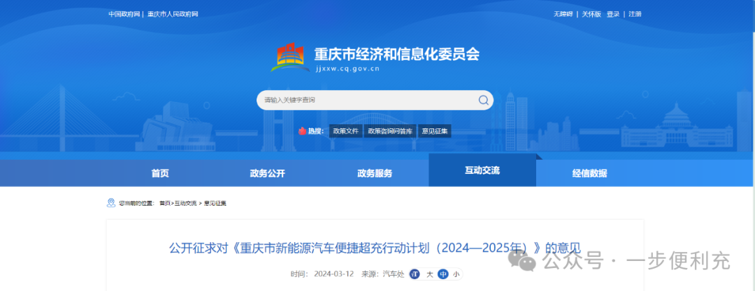 3月12日,重庆经信委印发《重庆市新能源汽车便捷超充行动计划(2024-2025年)》的意见。计划提出: 为构建以超充为主体、新能源汽车与电网融合互动的高质量充电基础设施体系,到2025年底,实现新能源汽车与超充网络相互协同、与电网融合互动,建成布局均衡、充电便捷、智能高效、机制完备、技术先进的便捷超充生态,推动我市新能源汽车产业协同高质量发展。 全市建成超充站2000座以上,其中中心城区1300座以上,主城新区(包含万州区)、两群地区500座以上,高速公路服务区170座以上;建成超充桩4000个以上。 - 征求意见稿如下: - 重庆市新能源汽车便捷超充行动计划 (2024—2025年) (征求意见稿)