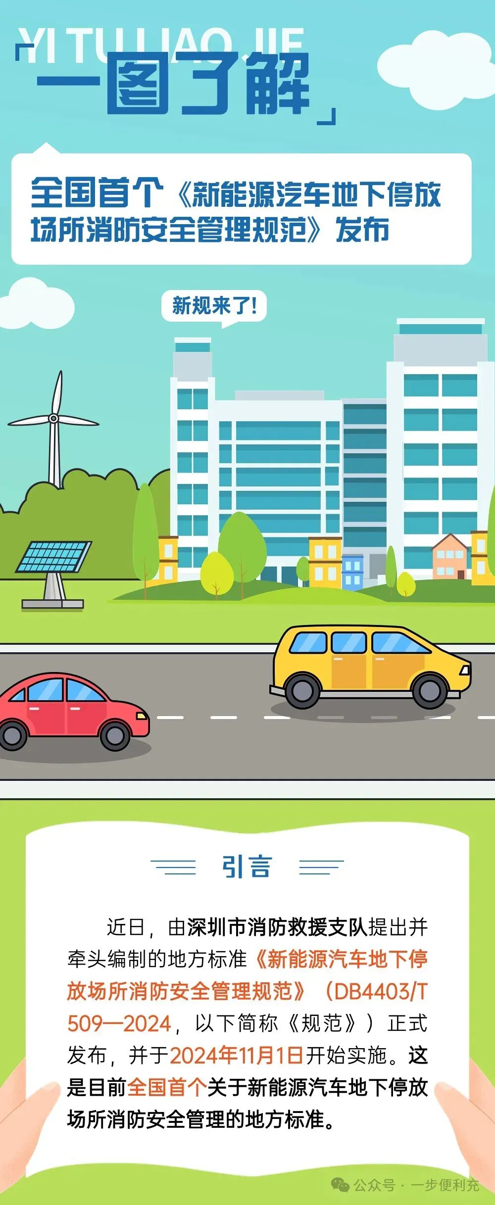 近日深圳发布全国首个关于新能源汽车地下停放场所消防安全管理的地方标准。