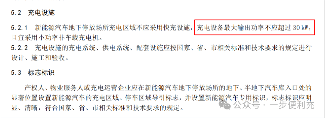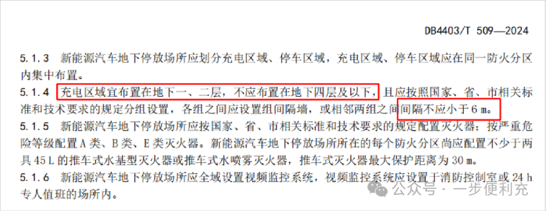 《规范》紧紧围绕新能源汽车火灾防范特点,结合国家、省相关要求,做到三个明确,即“明确新能源汽车地下停放场所充电区域宜设置在地下一层、二层,不应设置在地下四层及以下,且应按照国家、省、市相关标准和技术要求的规定分组设置,各组之间应设置组间隔墙,或相邻两组之间间隔不应小于 6 m。明确充电区域应分组设置及相关技术要求,明确规定了地下充电区域不应采用快充桩,且充电设备最大输出功率不应超过30kW,且宜采用小功率非车载充电机。