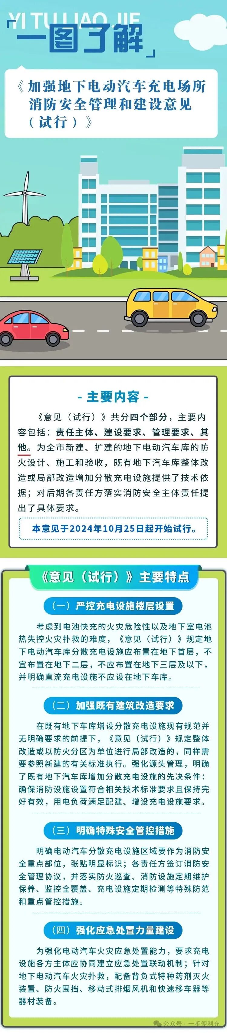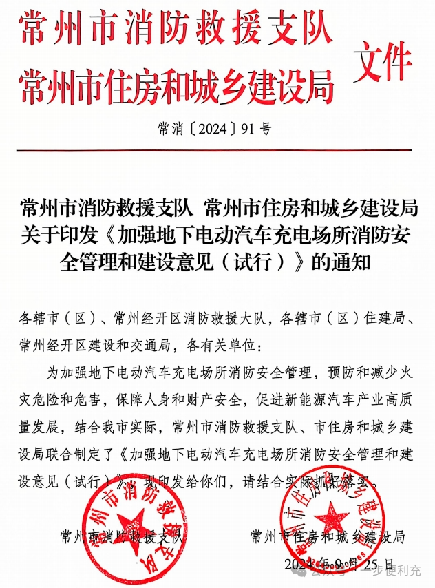 近日为服务常州新能源之都高质量发展,推动公共安全治理模式向事前预防转型,常州市消防救援支队在结合常州实际的基础上,联合常州市住建局共同起草了《加强地下电动汽车充电场所消防安全管理和建设意见(试行)》(以下简称《意见(试行)》)。 并将于10月25日起开始试行。 据常州消防部门介绍,随着新能源汽车数量日益增加,其火灾风险也日益凸显,目前市场上新能源汽车使用的大多是锂电池,相比常规火灾,锂电池火灾燃烧速度快,持续时间长,易发生爆燃和复燃,扑救难度大。 地下车库发生火灾后,由于车辆停放密集,出入口少,火场产生高温浓烟,扑救难度高。 ▲常州支队开展地下停车场新能源乘用车火灾事故模拟演练 《意见(试行)》规定地下电动汽车库分散充电设施应布置在地下首层,不宜布置在地下二层,不应布置在地下三层及以下,并明确直流充电设施不应设在地下车库。 -(原件如下)- 这份意见具体包含哪些内容? 什么时候开始实施?一起来看看吧! 文件来源:常州消防官网 |
