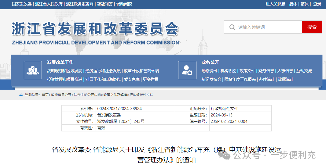浙江省发布《浙江省新能源汽车充(换)电基础设施建设运营管理办法》 3264