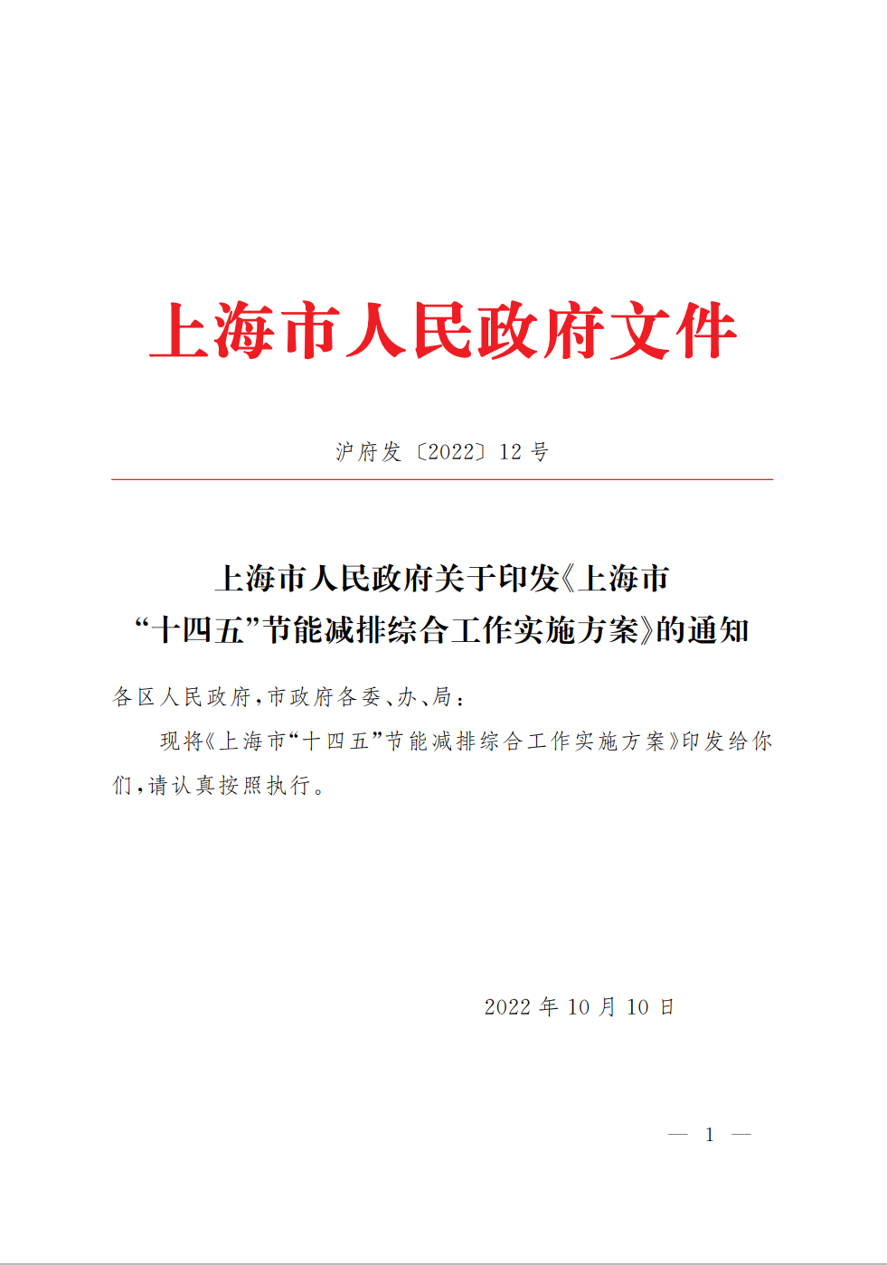 上海市人民政府关于印发《上海市“十四五”节能减排综合工作实施...