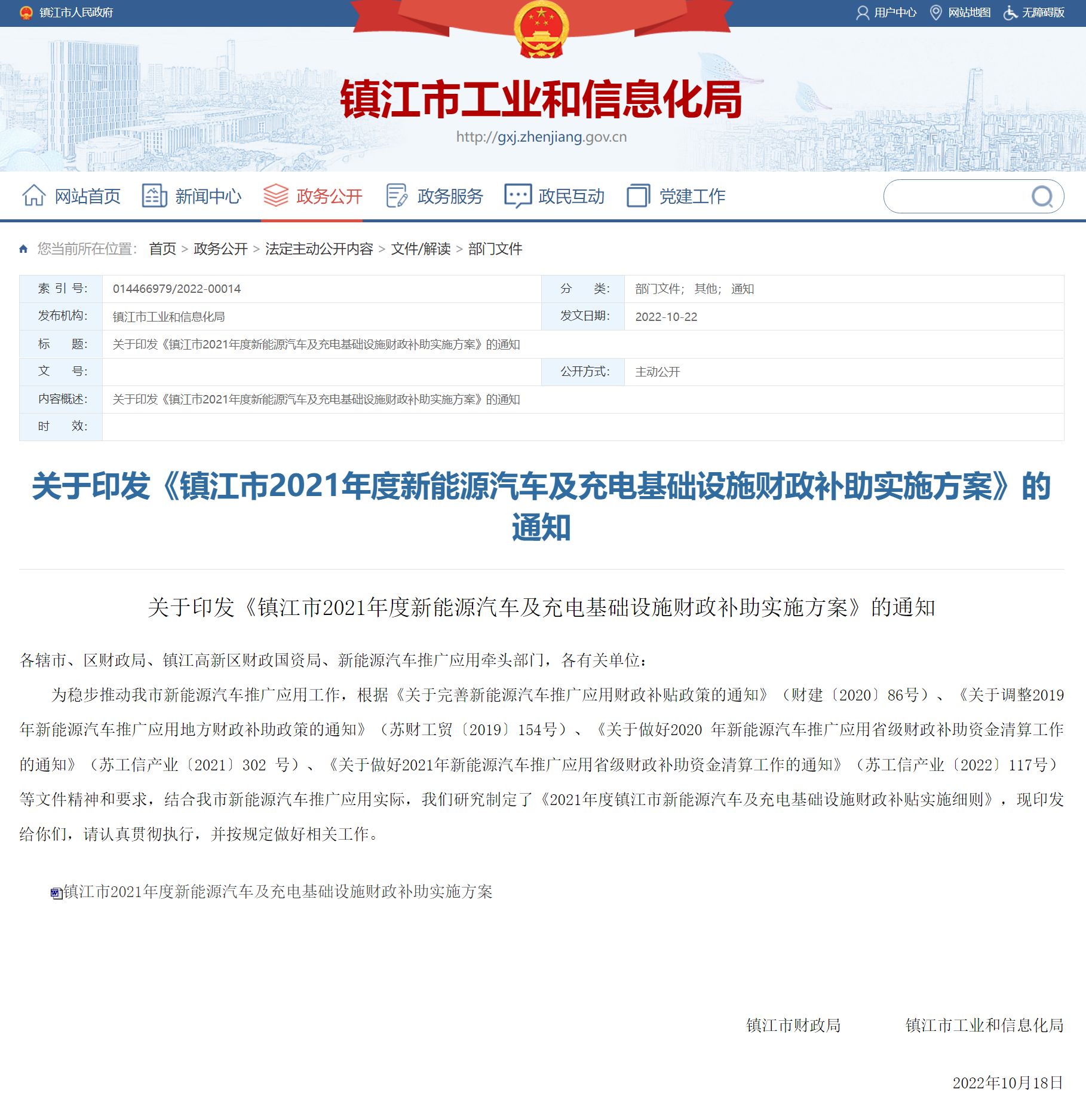 镇江市|关于印发《镇江市2021年度新能源汽车及充电基础设施财政...