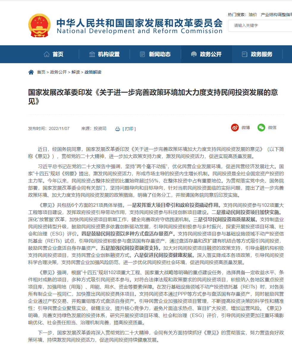 国家发展改革委印发《关于进一步完善政策环境加大力度支持民间投...