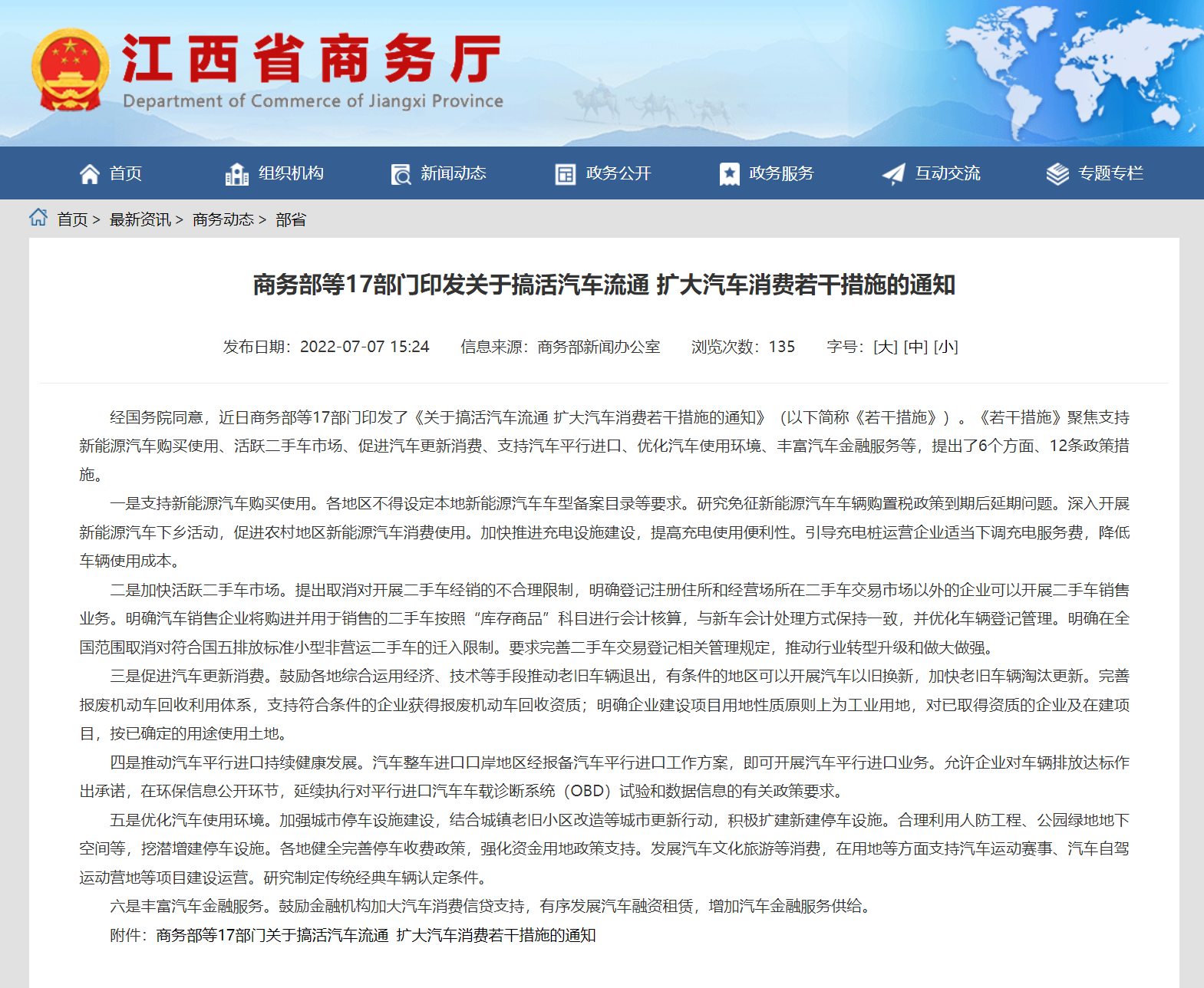 江西省商务厅等17部门关于搞活汽车流通扩大汽车消费若干举措的通...