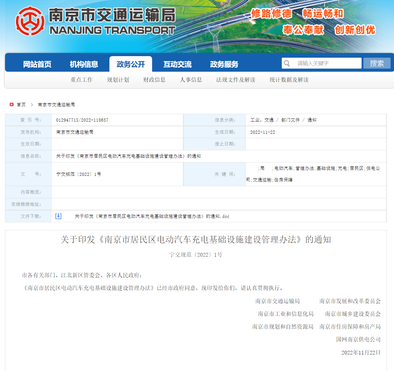 南京|关于印发《南京市居民区电动汽车充电基础设施建设管理办法...