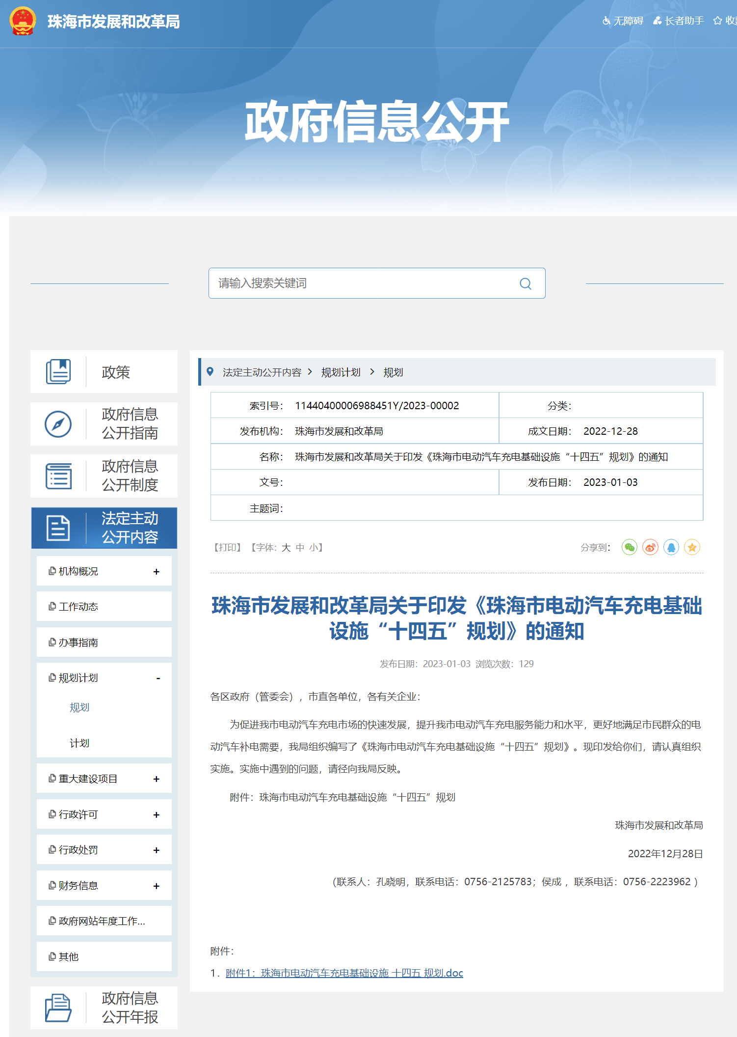 珠海市|发展和改革局关于印发《珠海市电动汽车充电基础设施“十...